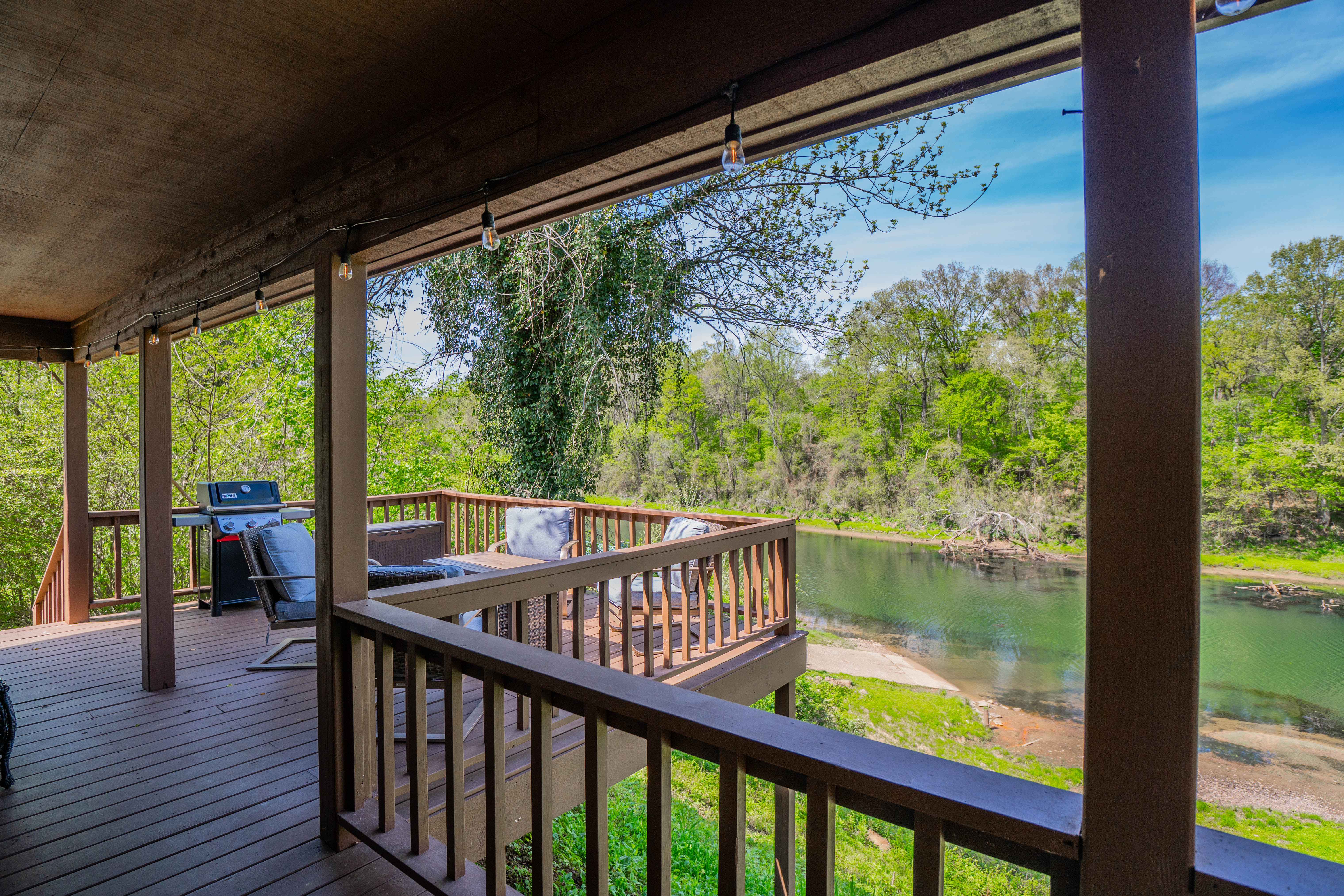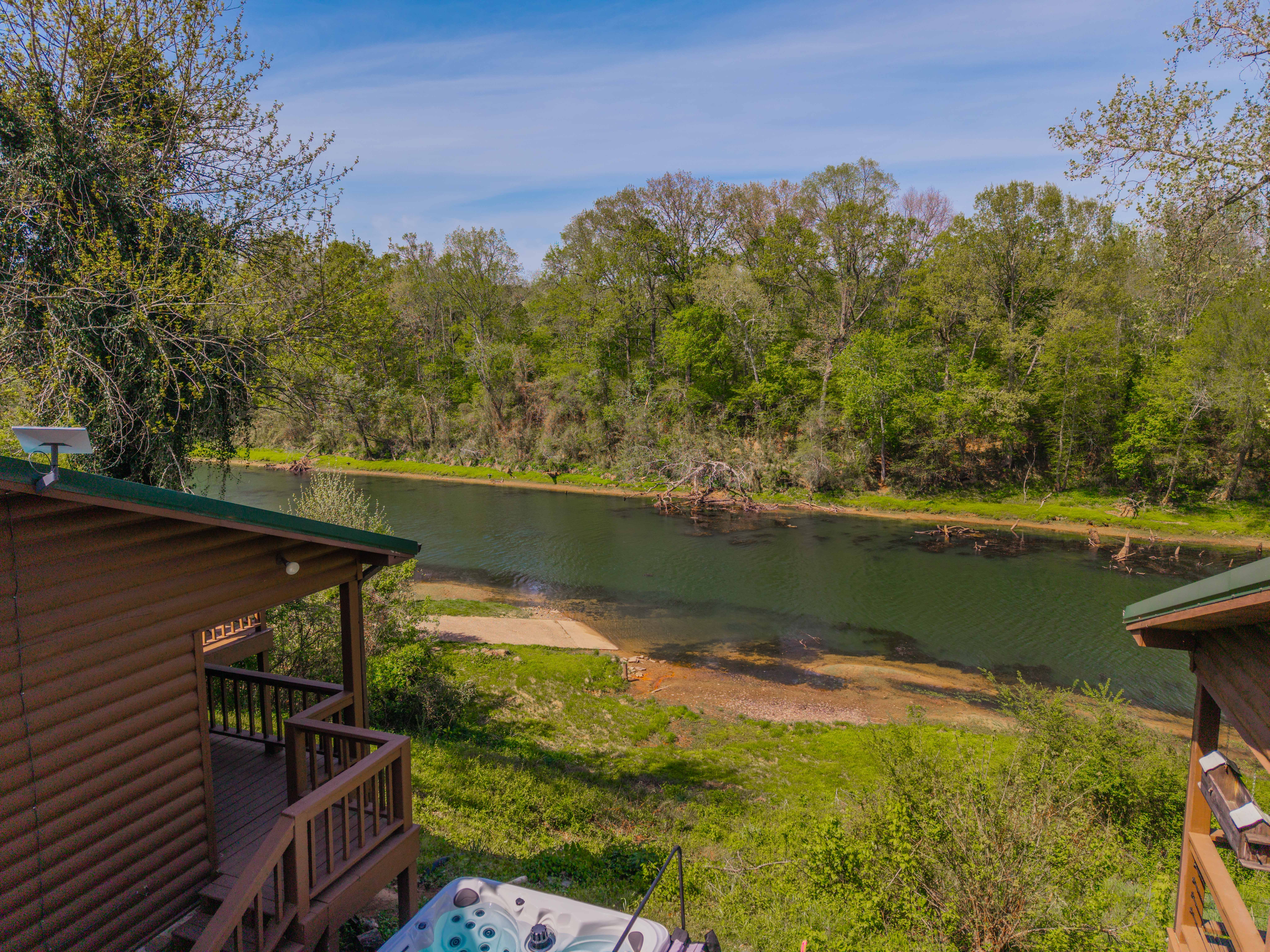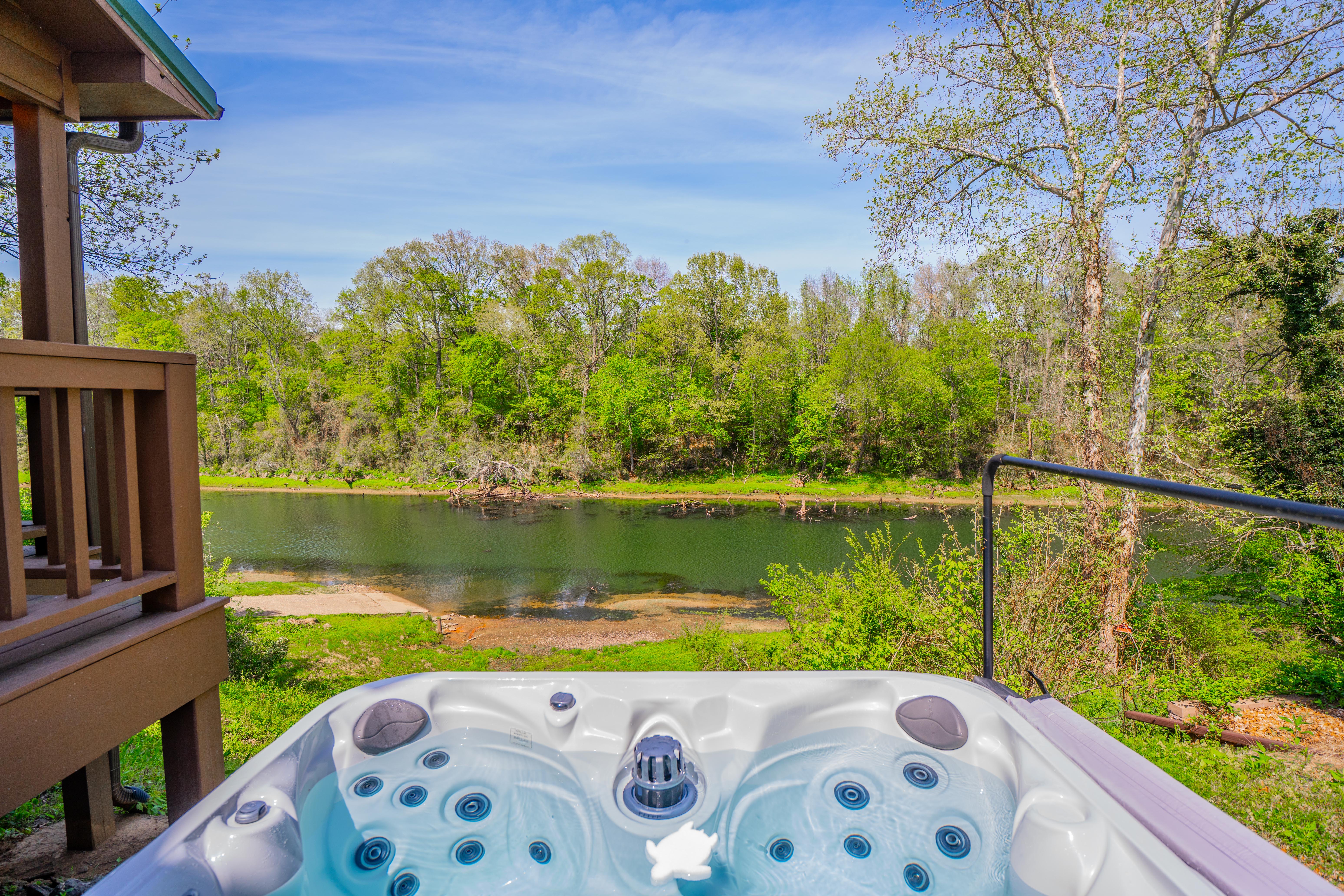 LOCATION 📍 River front 🎣 Prime fishing water (located on a guide-favorite stretch known for particularly large brown trout) 🛶 Adjacent to Lobo Landing boat ramp (most reliable boat ramp at low water) and marina ⭐️ Short drive to JFK, Cow Shoals, Winkley Shoals, or Greers Ferry Lake 🦅🦊🦦🦫🦌🦆🪿 Lots of wildlife in the area, including Bald Eagles, Hawks, Foxes, Otters, Beavers, Herons, Deer, Ducks, and Geese SLEEPING ARRANGEMENTS 🛏 King bed 🛏🛏 Two Twin XL beds that are comfortable for adults 🪵 Premium mattresses, bedding, and real cedar bed frames 👼 A toddler floor mattress available AMENITIES ♨️ Hot Tub (240V so it will stay hot!) 💻 Fast internet 📺 58" smart TV with several streaming services (HBO, Netflix, YouTube TV, Disney+, Prime) 🔥 Spacious deck with comfortable chairs & a propane fire pit & grill 🍳 Fully equipped kitchen (stainless and nonstick options) ☕️ Multiple coffee & tea options (Keurig, drip, and French press w/ electric kettle) 🗝 Smart-lock for easy check-in 🎯 Cornhole set in the deck box 🪓 Indoor wood-burning fireplace (no wood provided) Single-level (only a few steps for the deck).
