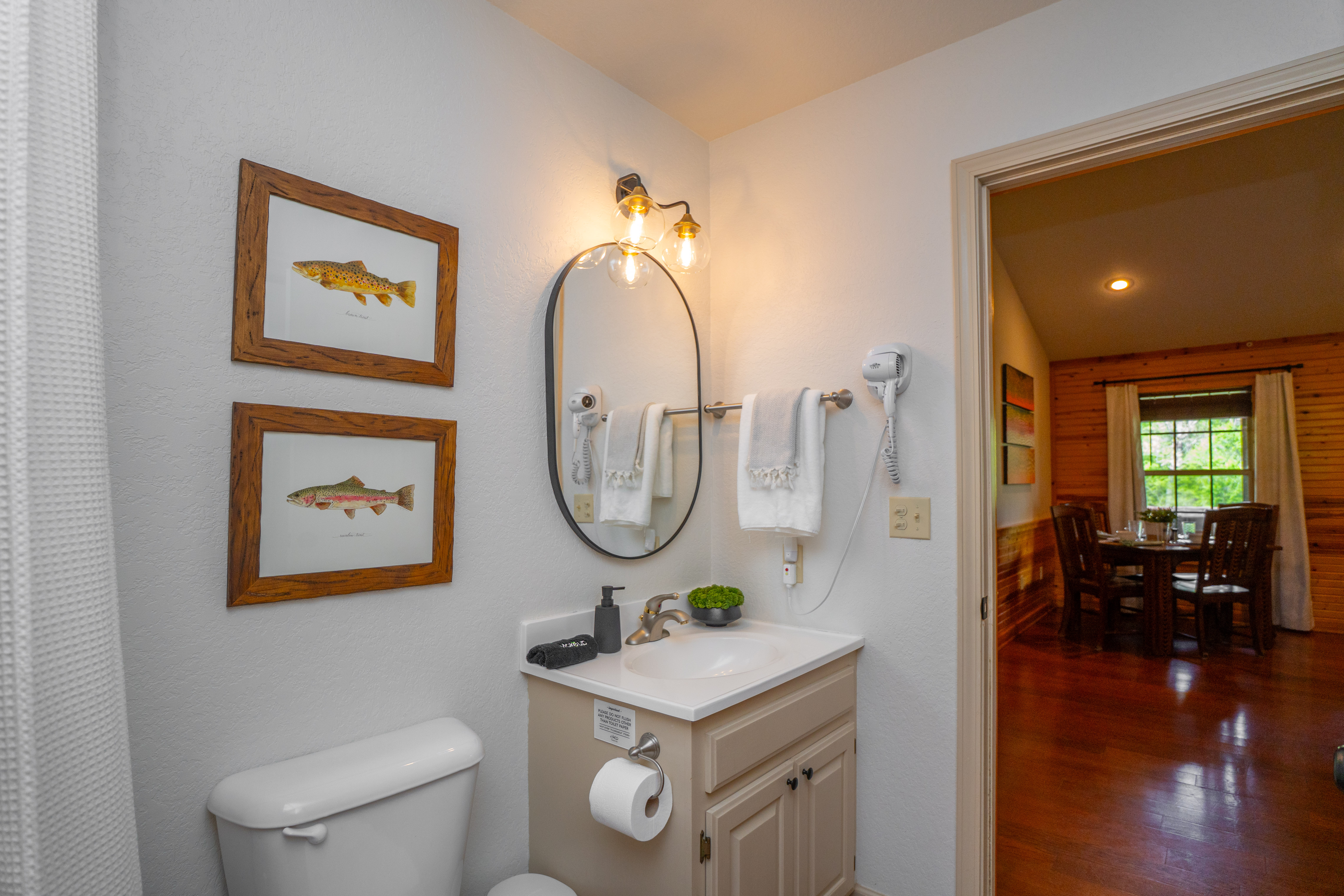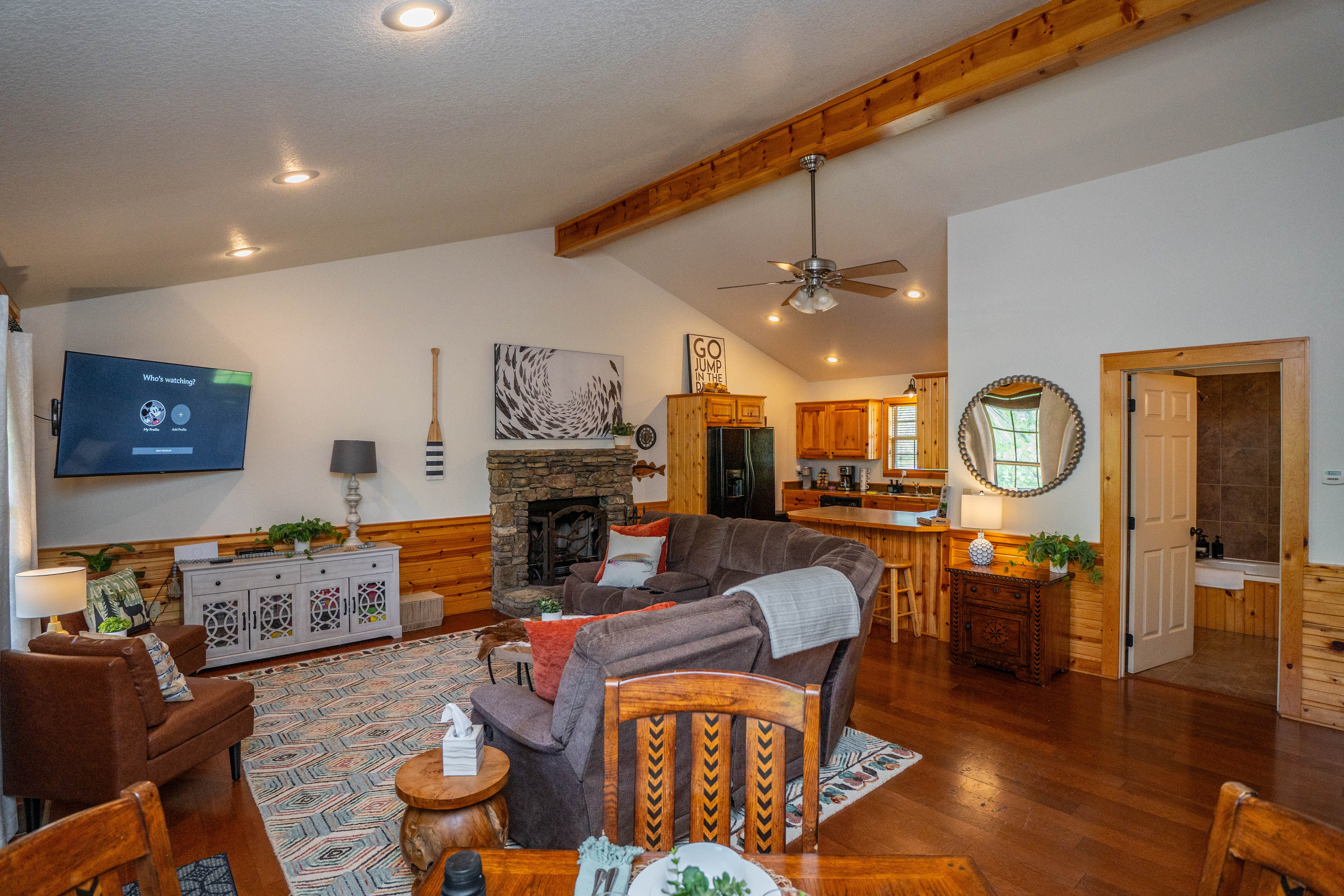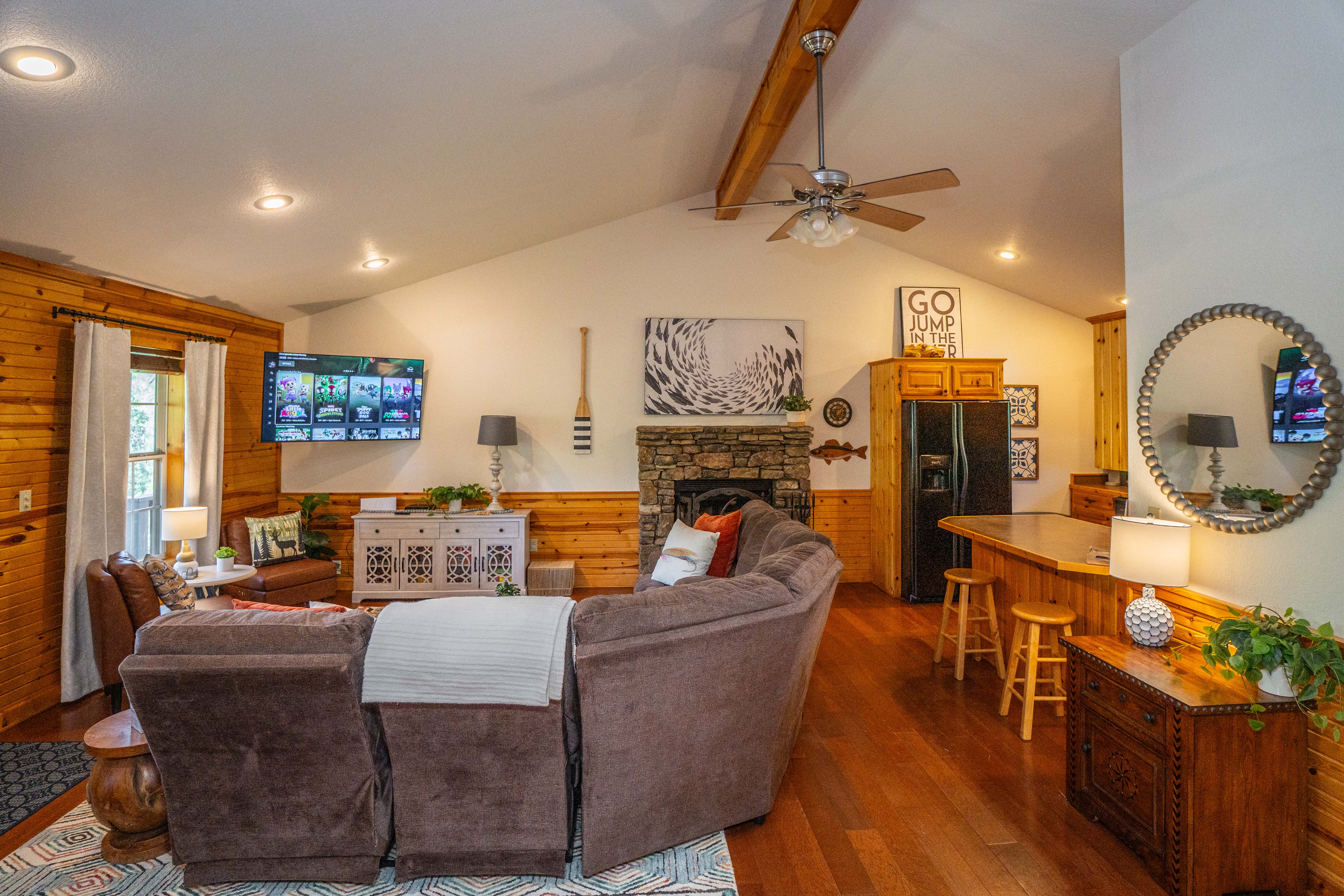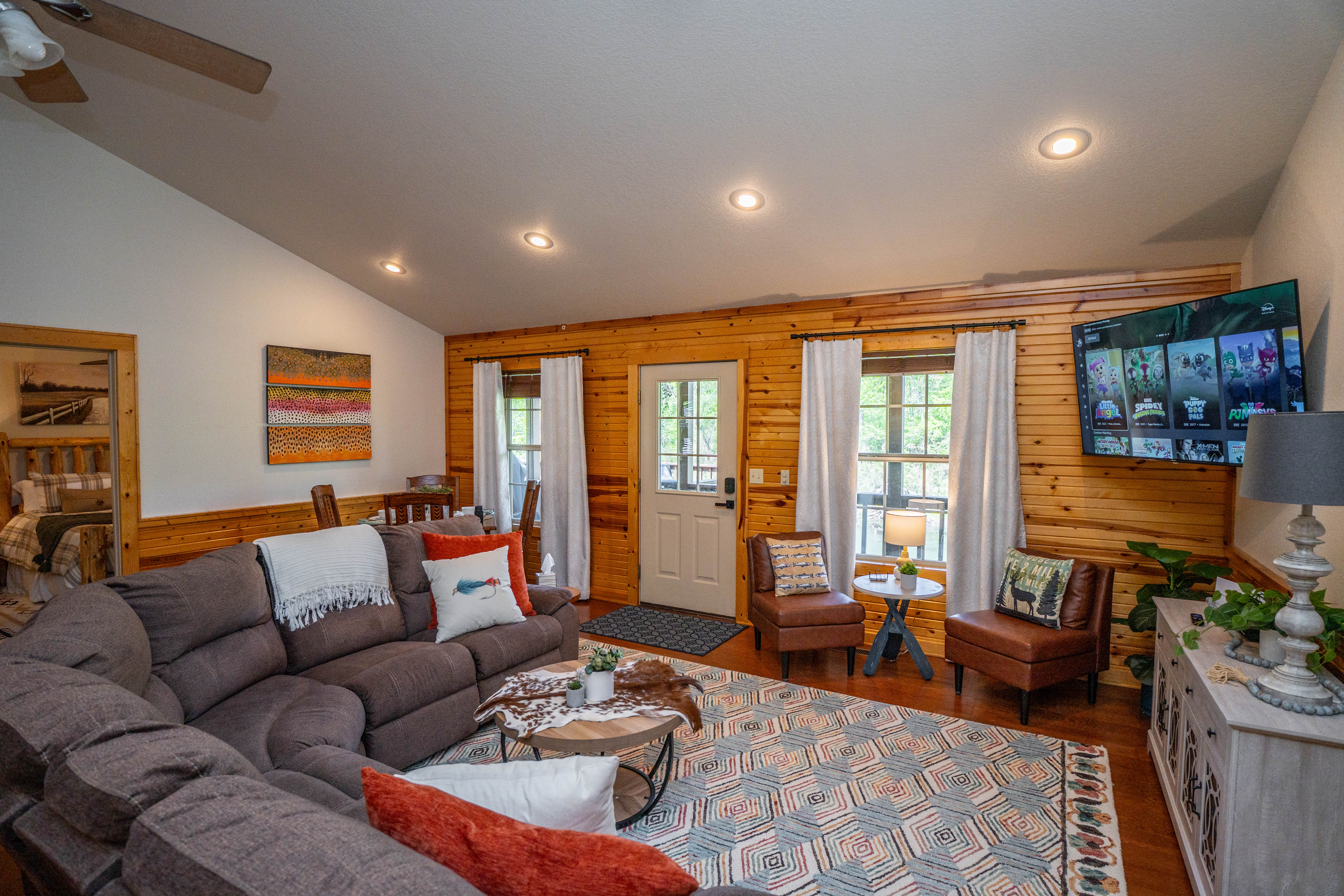 This is a peaceful, family and fishing-oriented area. Quiet hours are expected. The river is a natural body of water; children should be supervised at all times outdoors. The cabin is not pet-friendly. We’ve furnished and stocked the home to a high standard, so please treat it with care. If you’re planning to fish, we’re happy to share general local tips (flows, access points, seasonal considerations).